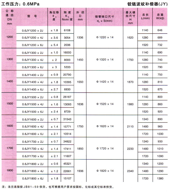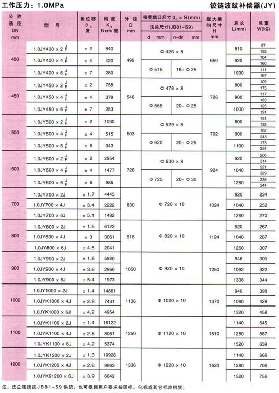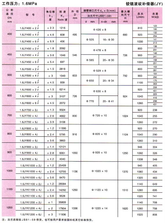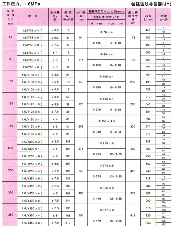 鉸鏈波紋補償器技術參數