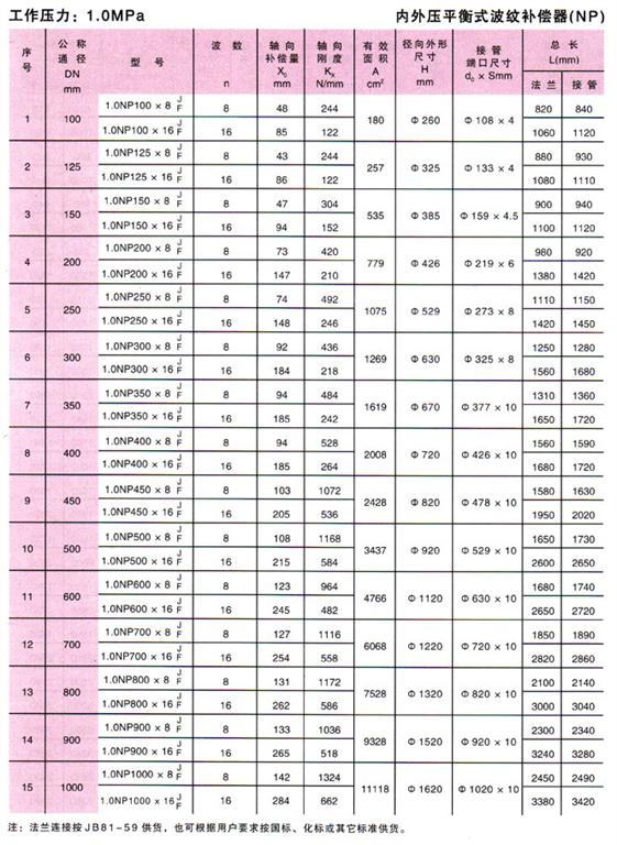內外壓力平衡式波紋補償器技術參數