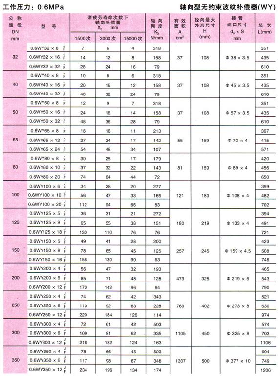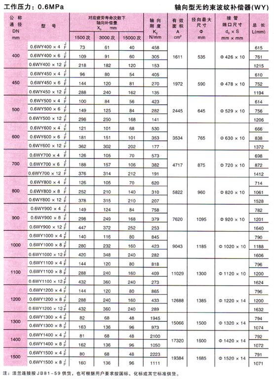 無約束波紋補(bǔ)償器技術(shù)參數(shù)