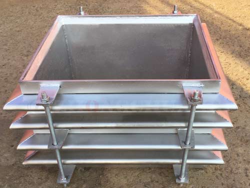 1、復式拉桿波紋伸縮器,結構簡單、補償量大,一般使用于低疲勞次數,需大補償量的管線。